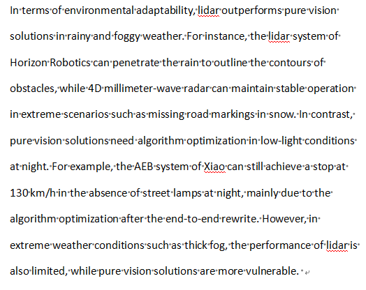 Lidar and pure vision solutions are not mutually exclusive but rather complementary and coexisting technical routes. Lidar provides high-precision three-dimensional spatial information, while pure vision captures rich semantic information. The integration of the two can build a more comprehensive and reliable environmental perception system. With the maturation of solid-state lidar technology and the reduction in costs, as well as the continuous optimization of pure vision algorithms, the fusion solution will become the mainstream direction of intelligent driving, especially in L3 and above autonomous driving scenarios.