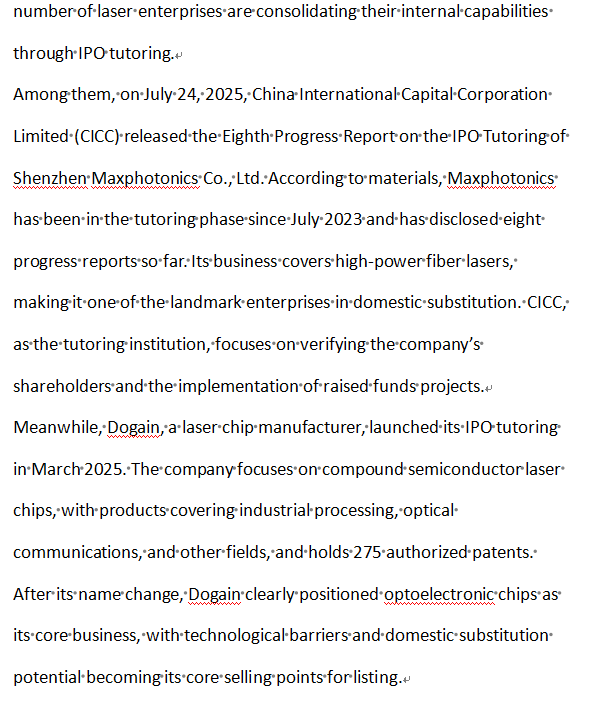 Analysts believe that the extension of the IPO tutoring period for these laser industry chain enterprises reflects the increasingly strict compliance requirements imposed by regulators on enterprises preparing for listing. The patient preparation of Maxphotonics, Dogain, and Lastop Technology suggests that the maturity and success rate of subsequent IPO applications may be further improved.