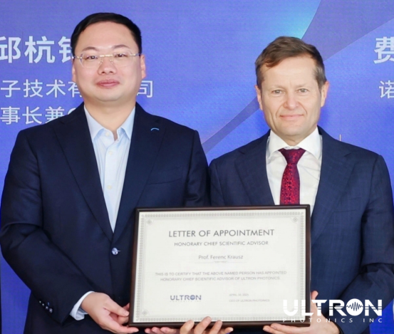 On April 30, 2025, Professor Ferenc Krausz embarked on his first corporate cooperation journey in China's femtosecond laser sector at the invitation of Ultron Photonics (Hangzhou) Co., Ltd. This marks not only Professor Krausz's first appointment as a technical advisor to a Chinese femtosecond laser enterprise but also the first strategic cooperation between a Nobel Prize-level scientist and a Chinese femtosecond laser company.