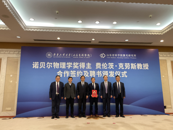 On January 23, 2025, Professor Krausz visited Qilu University of Technology (Shandong Academy of Sciences) and was appointed Honorary Chair Professor of the university (academy) as well as Chief Scientist of the Laser Research Institute of Shandong Academy of Sciences. Through this cooperation, the two parties will carry out joint research on cutting-edge fields such as high-power ultrafast lasers and attosecond laser physics, providing intellectual support for the high-quality development of the laser industry in Shandong Province and even the whole country.