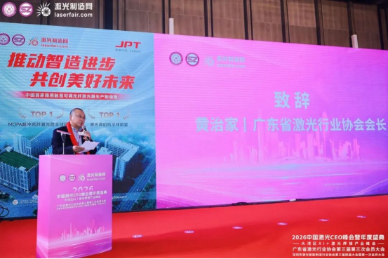 Huang Zhijia, President of Guangdong Laser Industry Association and Chairman of JPT Optoelectronics, shared his insights from attending the CES exhibition and offered an in-depth analysis of the rising trend of physical intelligence driven by AI. He pointed out that the industry completed in-depth consolidation in 2025, and it is expected to enter a new phase featuring "quality first and systemic capabilities as the decisive factor" in 2026. In conclusion, he called on enterprises to return to fundamentals, focus on developing expertise in niche sectors, pursue collective overseas expansion, resist vicious internal competition, and jointly build a healthy and sustainable industrial ecosystem.