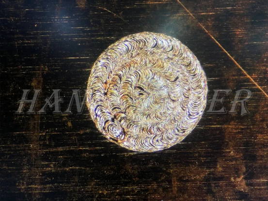 Welding Materials: 0.055mm copper mesh + 0.06mm copper sheetProcess Requirements: Achieve bonding between copper mesh and copper sheet; reduce wire breakage during welding; ensure no penetration on the back side, as well as guaranteed welding strength and no delamination.Welding Challenges: Ensure no delamination or cold welding of copper mesh; achieve micron-level processing and precise heat input; control welding penetration depth ≤30μm.