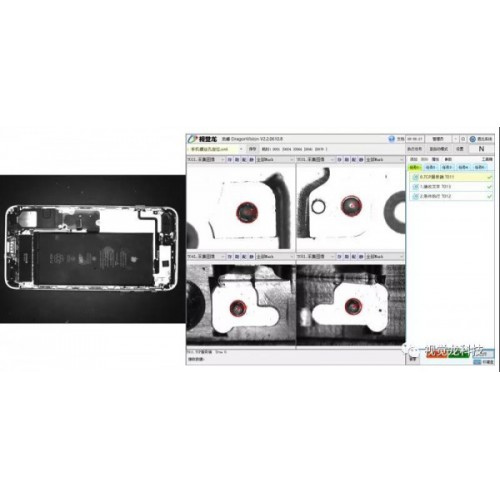 手機(jī)定位打螺絲項(xiàng)目:視覺(jué)識(shí)別出需要鎖付的螺絲孔位后,引導(dǎo)機(jī)器人移動(dòng)到指定坐標(biāo)進(jìn)行螺絲鎖附。