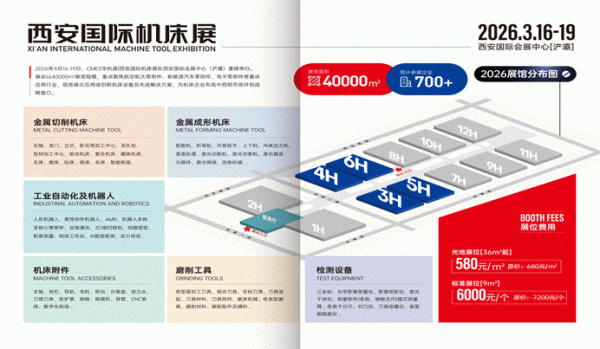 2026年3月16-19日,CMES華機(jī)展|西安國(guó)際機(jī)床展在西安國(guó)際會(huì)展中心(浐灞)重磅舉辦。展會(huì)以40000㎡展覽規(guī)模,重點(diǎn)聚焦航空航天零部件、新能源汽車零部件、電子零部件等重點(diǎn)應(yīng)用行業(yè),現(xiàn)場(chǎng)展示應(yīng)用端創(chuàng)新機(jī)床設(shè)備及先進(jìn)解決方案,為機(jī)床企業(yè)布局中西部市場(chǎng)開創(chuàng)戰(zhàn)略窗口。
