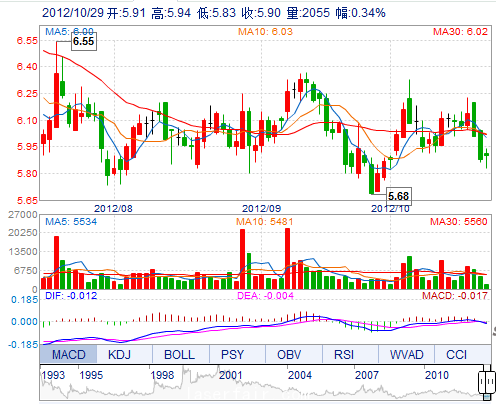 今 開: 5.91 成交量: 2055手 振 幅: 1.87% 最 高: 5.94 成交額: 120.83萬 換手率: 0.12% 最 低: 5.83 總市值: 10.25億 市凈率: 2.62 昨 收: 5.88 流通市值: ...