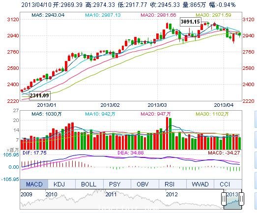 昨  收: 2973.23 最  低: 2917.77