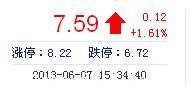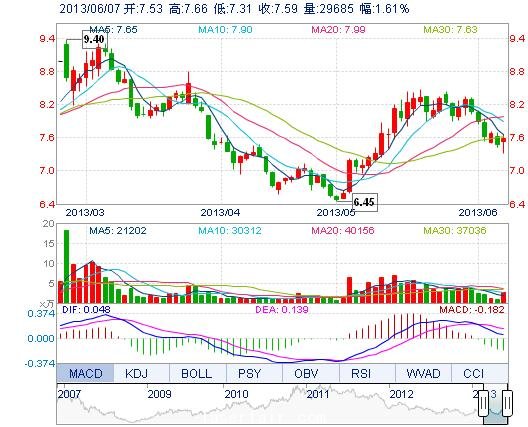今開: 7.53 成交量: 2.97萬手 振幅: 4.69% 最高: 7.66 成交額: 2230.46萬元 換手率: 1.53% 最低: 7.31 總市值: 15.12億 市凈率: 3.13 昨收: 7.47 流通市值: ...