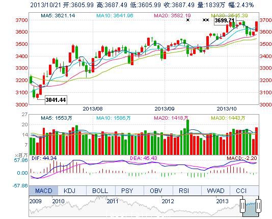 今開: 3605.99 最高: 3687.49 昨收: 3600.13 最低: 3605.99 成交量: 1838.83萬(wàn)手 振幅: 2.26% 成交額: 221.32億元