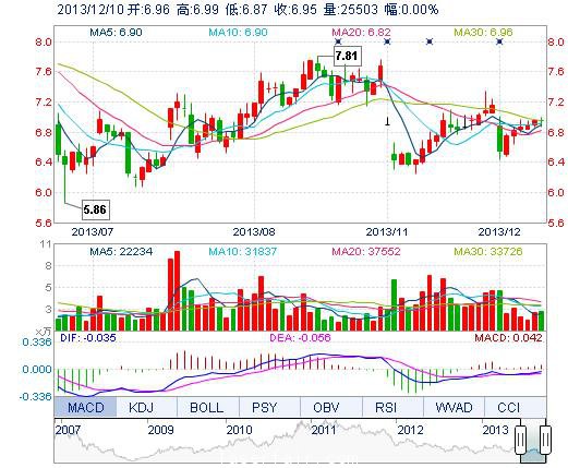 | 最 低: | 6.87 | 總市值: | 13.85億 | 市凈率: | 2.82 |