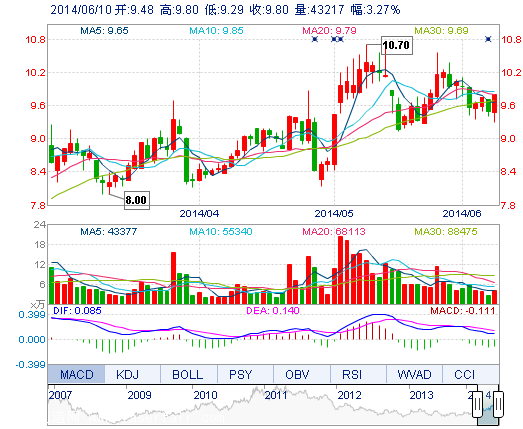 | 今 開: | 9.48 | 成交量: | 4.32萬手 | 振 幅: | 5.37% |
