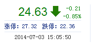 | 最 高: | 24.85 | 成交額: | 7424.01萬(wàn)元 | 換手率: | 0.58% |