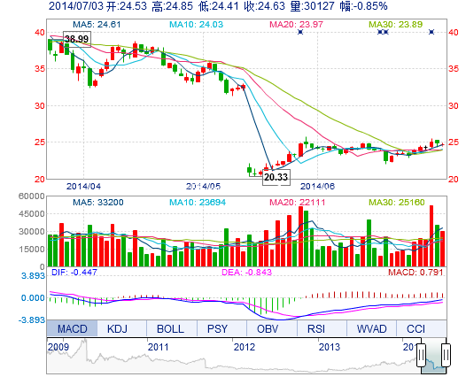 | 最 低: | 24.41 | 總市值: | 160.59億 | 市凈率: | 6.12 |