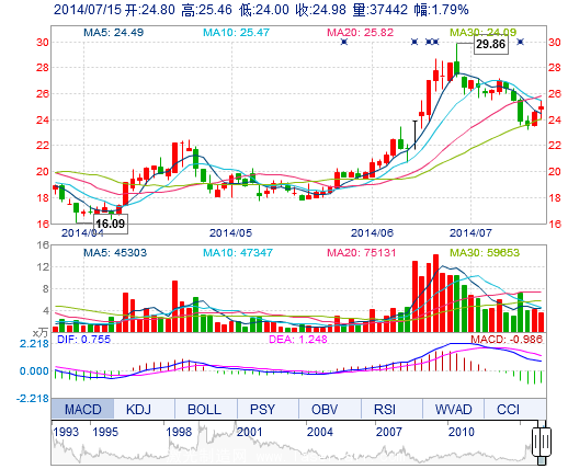 | 今 開: | 24.80 | 成交量: | 3.74萬手 | 振 幅: | 5.95% |