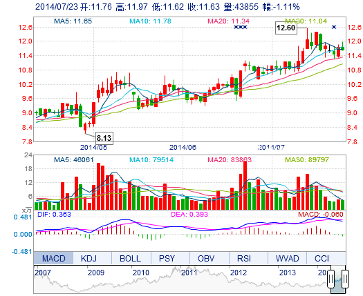 | 最 高: | 11.97 | 成交額: | 5169.38萬(wàn)元 | 換手率: | 2.20% |