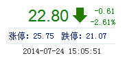 今開: 23.38 成交量: 6.09萬手 振幅: 6.83% 最高: 23.45 成交額: 1.37億元 換手率: 1.17% 最低: 21.85 總市值: 148.65億 市凈率: 5.67 昨收: 23.41 流通市值...