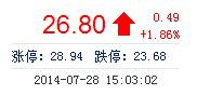 | 最 低: | 25.98 | 總市值: | 46.55億 | 市凈率: | 13.46 |