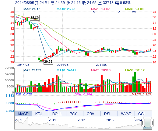 | 最 低: | 24.16 | 總市值: | 160.72億 | 市凈率: | 6.13 |