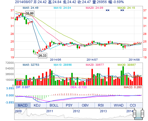 | 最 低: | 24.42 | 總市值: | 159.54億 | 市凈率: | 6.08 |