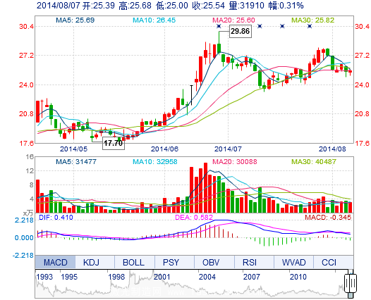 | 今 開: | 25.39 | 成交量: | 3.19萬手 | 振 幅: | 2.67% |