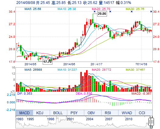 | 最 低: | 25.13 | 總市值: | 44.50億 | 市凈率: | 12.87 |