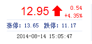 | 最 高: | 13.00 | 成交額: | 1.35億元 | 換手率: | 5.35% |