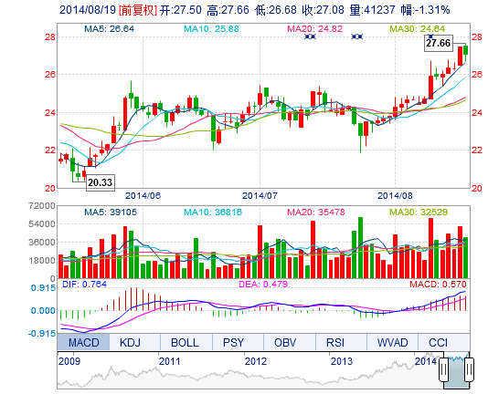 | 最 高: | 27.66 | 成交額: | 1.12億元 | 換手率: | 0.79% |