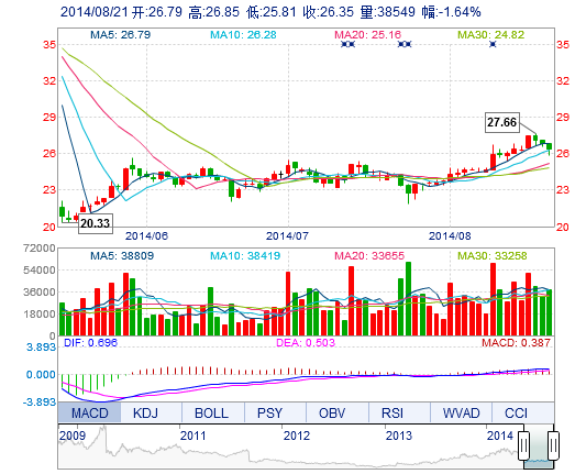 | 最 低: | 25.81 | 總市值: | 172.19億 | 市凈率: | 9.47 |