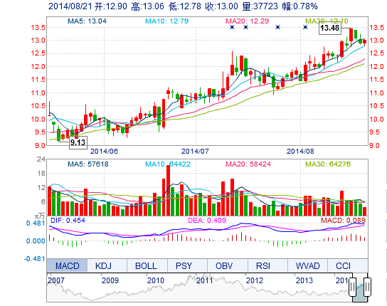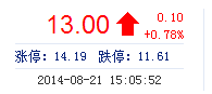 | 最 高: | 13.06 | 成交額: | 4871.28萬(wàn)元 | 換手率: | 1.89% |