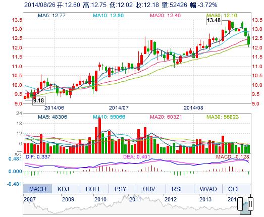 | 最 高: | 12.75 | 成交額: | 6475.77萬(wàn)元 | 換手率: | 2.64% |