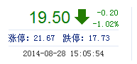 今開: 19.52 成交量: 17.74萬手 振幅: 2.18% 最高: 19.75 成交額: 3.46億元 換手率: 1.85% 最低: 19.32 總市值: 205.87億 市凈率: 5.59 昨收: 19.70 流通市值...
