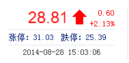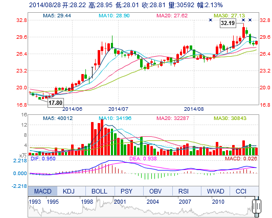 | 今 開: | 28.22 | 成交量: | 3.06萬手 | 振 幅: | 3.33% |