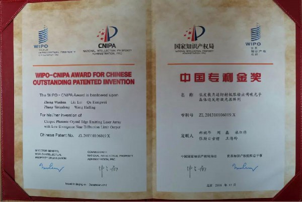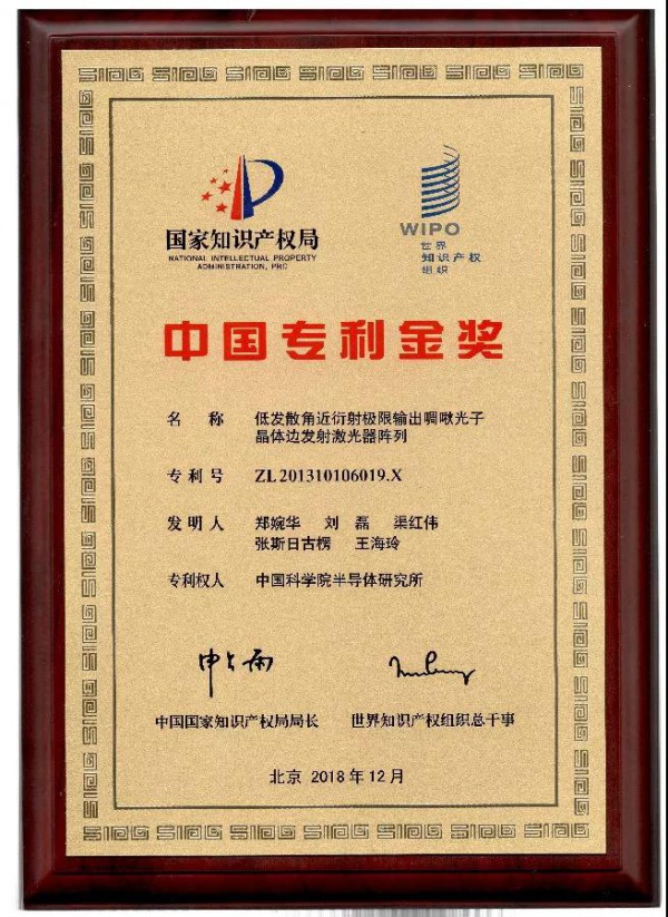 12月25日,第二十屆中國專利獎(jiǎng)?lì)C獎(jiǎng)大會(huì)在北京隆重召開,半導(dǎo)體研究所鄭婉華課題組授權(quán)專利“低發(fā)散角近衍射極限輸出啁啾光子晶體邊發(fā)射激光器陣列”榮獲第二十屆中國專利金獎(jiǎng),這是我所首次榮獲中國專利金獎(jiǎng)。