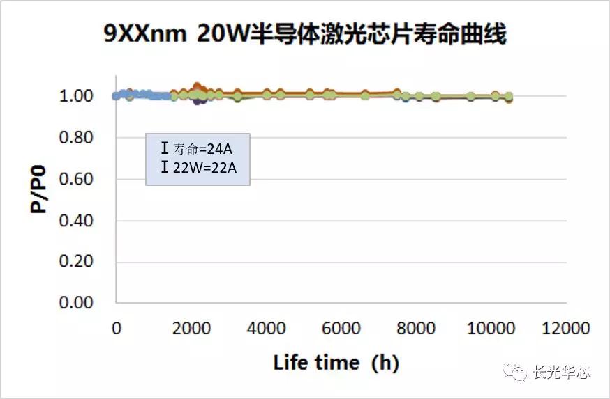 圖6 9XXnm 20W半導(dǎo)體激光芯片壽命曲線
