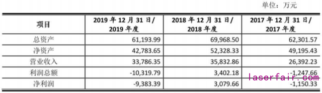 截止2019年12月31日,炬光科技總資產(chǎn)為61193.99萬(wàn)元,凈資產(chǎn)為42783.65萬(wàn)元。2017-2019年,炬光科技實(shí)現(xiàn)營(yíng)業(yè)收入分別為2.64億元、3.58億元、3.38億元;凈利潤(rùn)分別為-1150.33萬(wàn)元、3079.66萬(wàn)元、-9383.39萬(wàn)元。