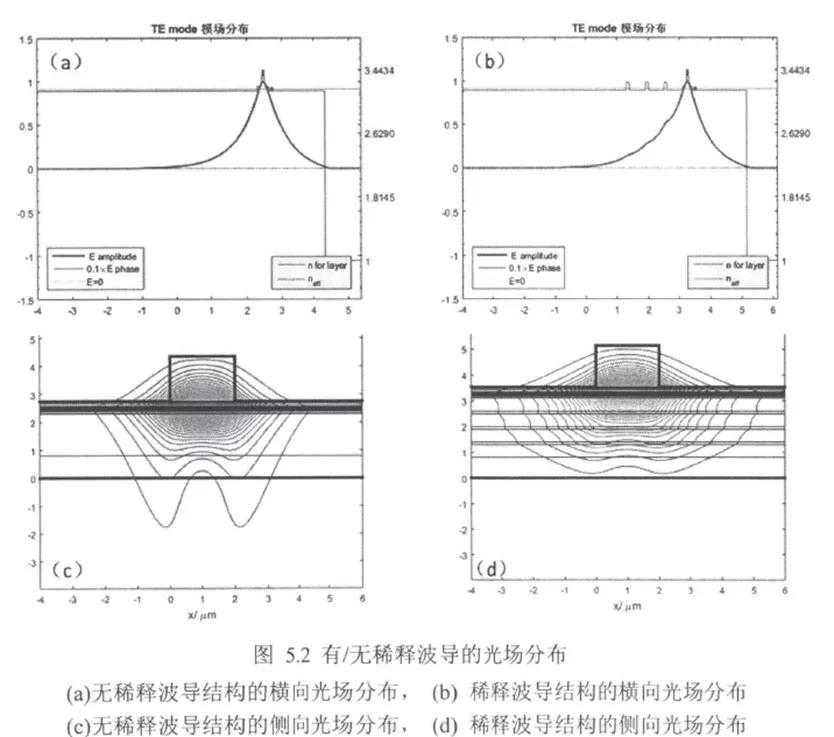 非對稱包層就是將n層和p層的折射率設(shè)置的不一樣,將光場分布偏移到n層,損耗較小,下圖的稀釋波導(dǎo)也起到非對稱包層的作用,可以看到光場分布有一定的變化,稀釋波導(dǎo)采用...