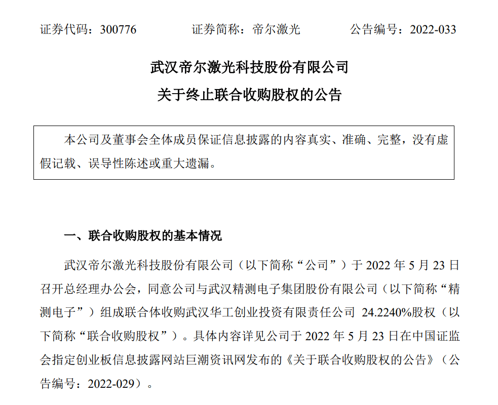 突發(fā)!帝爾激光終止與精測電子聯(lián)合收購華工創(chuàng)投部分股權(quán)