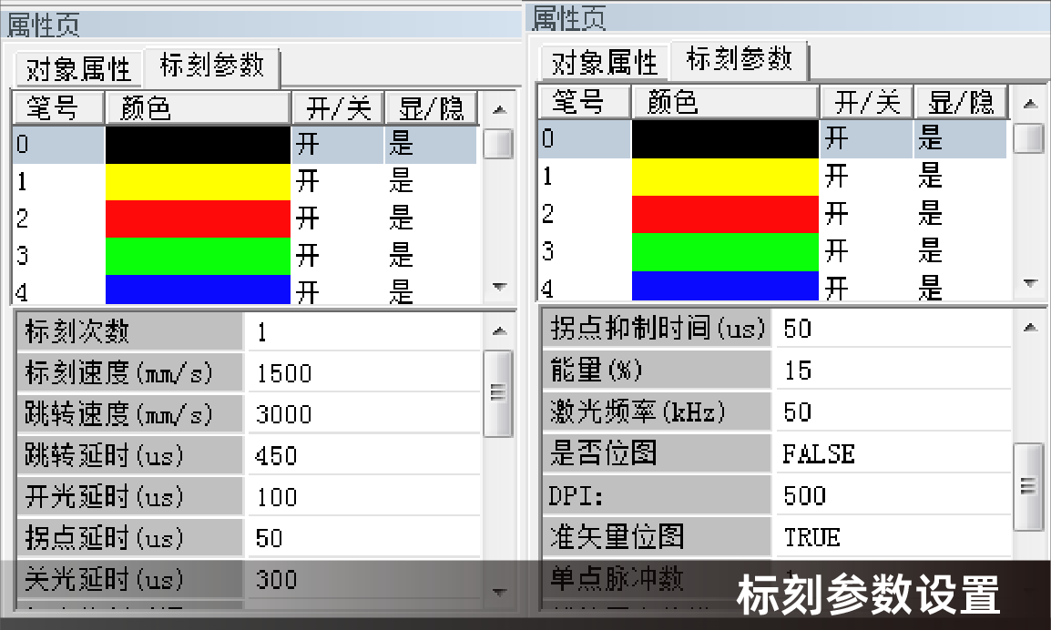 用戶(hù)可以自由設(shè)定標(biāo)刻速度、開(kāi)光延時(shí)、關(guān)光延時(shí)、拐點(diǎn)延時(shí)、激光頻率、激光脈寬、激光能量等參數(shù)。軟件內(nèi)還可以設(shè)置Z向深度,這就決定了我們能切割多厚的玻璃。配合163的場(chǎng)鏡,我們的焦深一般設(shè)置在±4mm,可以切割8mm左右的玻璃。如圖下圖所示。