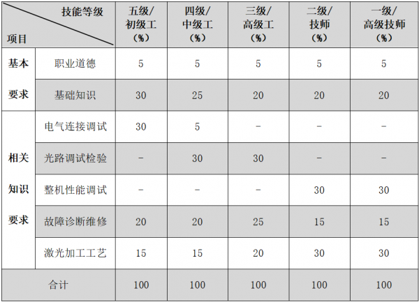 《激光設(shè)備安裝調(diào)試員》新職業(yè)技能要求權(quán)重表