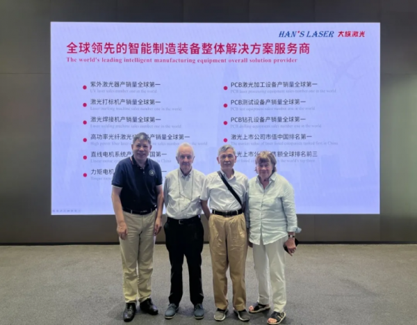 10月3日,大族激光全球智造中心迎來了一場意義非凡的科技對話——被譽(yù)為“德國固體激光之父”的Prof. Dr. Horst Weber教授偕夫人,與原華中科技大學(xué)激光研究所所長、我國激光技術(shù)奠基人之一的邱軍林教授及夫人陳珠芳女士,共同蒞臨大族激光參觀指導(dǎo)。這場跨越十六年的重逢,不僅是兩位激光領(lǐng)域泰斗的再聚首,更是中德激光技術(shù)交流史上濃墨重彩的一筆。