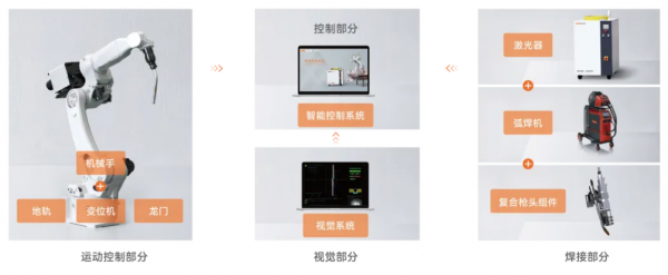 創(chuàng)鑫激光子公司寶辰鑫基于激光-電弧復(fù)合焊技術(shù)推出了船舶復(fù)合焊接子系統(tǒng)的標(biāo)準(zhǔn)化預(yù)集成方案,方案搭載高功率連續(xù)光纖激光器、定制化復(fù)合槍頭組件及高度集成的智能控制系統(tǒng);激光焊接頭與電弧焊接頭通過復(fù)合槍頭結(jié)構(gòu),以雙熱源的方式搭載在機(jī)械手或其他運(yùn)動控制平臺上,并搭配視覺系統(tǒng),實(shí)現(xiàn)高穩(wěn)定、高質(zhì)量的焊接,可應(yīng)用于不銹鋼、碳鋼、鋁合金等厚板材料的拼接焊或角焊等工藝。