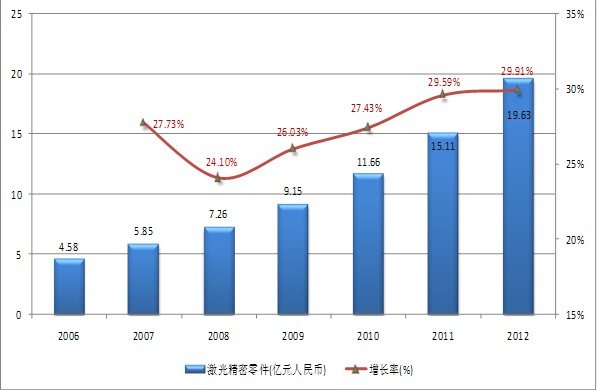 中國(guó)應(yīng)用激光技術(shù)加工的精密零件市場(chǎng)容量統(tǒng)計(jì)與預(yù)測(cè)