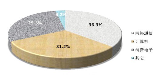 我國(guó)目前己成為全球最大的個(gè)人電腦、筆記本電腦和顯示器生產(chǎn)基地。板與卡產(chǎn)品是推動(dòng)SMT市場(chǎng)發(fā)展的大功臣,其中包括主板、顯卡、聲卡和網(wǎng)卡。中國(guó)SMT市場(chǎng)可按應(yīng)用領(lǐng)域劃分為網(wǎng)絡(luò)通信、消費(fèi)電子和計(jì)算機(jī)幾個(gè)主要行業(yè),這幾個(gè)行業(yè)占總市場(chǎng)份額超過90%。