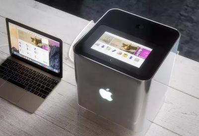 設(shè)計(jì)師馬丁·哈耶克設(shè)想的未來蘋果3D彩色打印機(jī)模型將從下面的桶里提升上來