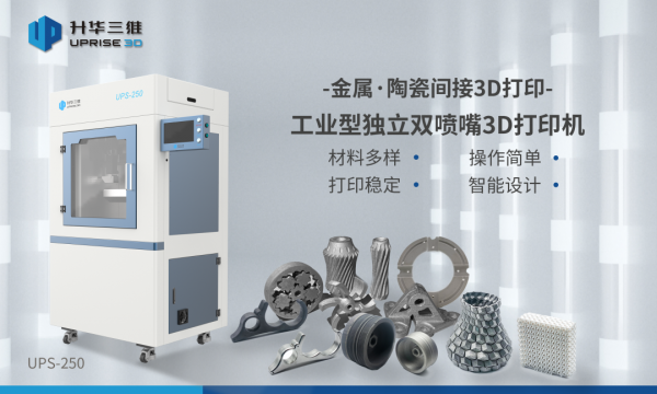 深圳升華三維科技有限公司成立于2017年6月,中國金屬·陶瓷間接3D打印技術的開拓者和領航者,是一家專注于金屬/陶瓷間接3D打印裝備及材料研發(fā)生產(chǎn)的國家高新技術企業(yè),致力于金屬?陶瓷間接3D打印技術的推廣及應用,產(chǎn)品廣泛運用于航空航天領域當中, 其核心產(chǎn)品工業(yè)型獨立雙噴嘴3D打印機UPS-250及大尺寸獨立雙噴嘴3D打印機UPS-556均采用獨立雙噴嘴設計,可以同時打印或者各自輪流打印金屬和陶瓷不同種類材料的復合產(chǎn)品開發(fā),實現(xiàn)復雜結(jié)構(gòu)和產(chǎn)品的成形,具有操作簡單、工業(yè)型、高精度、高質(zhì)量、高性價比等優(yōu)點。