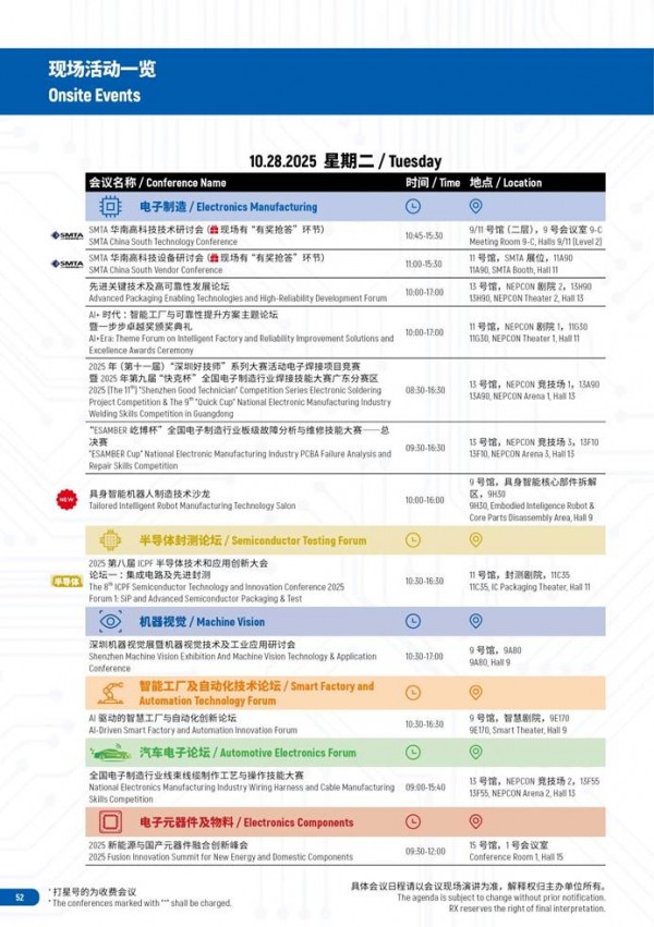 本屆展會(huì)不僅打造具身智能機(jī)器人及核心零部件拆解區(qū)、AI智能眼鏡拆解區(qū)、IGBT & SiC模塊封測(cè)工藝示范線、電子成品自動(dòng)化包裝示范區(qū)、柔性生產(chǎn)制造及智能輸送主題展區(qū)等亮點(diǎn)展區(qū),還有40場(chǎng)會(huì)議活動(dòng)覆蓋七大模塊,助力廣大觀眾一站式看盡電子制造黑科技!