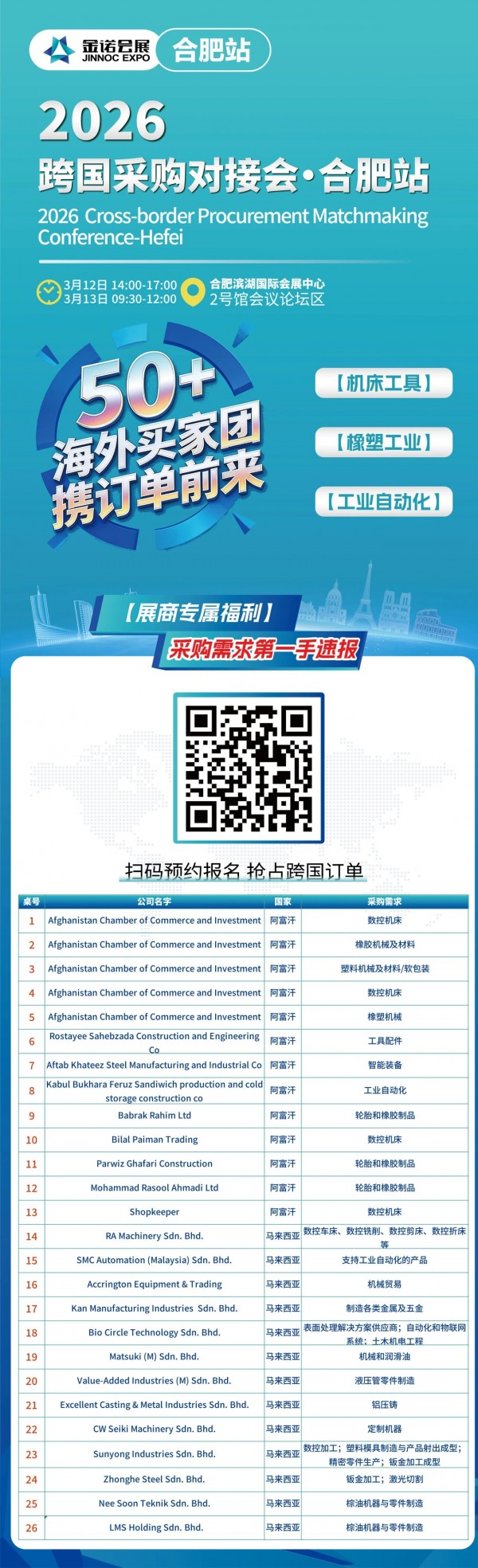 倒計時7天!2026合肥機床展跨國采購對接會、首臺套新品發(fā)布活動搶先看!